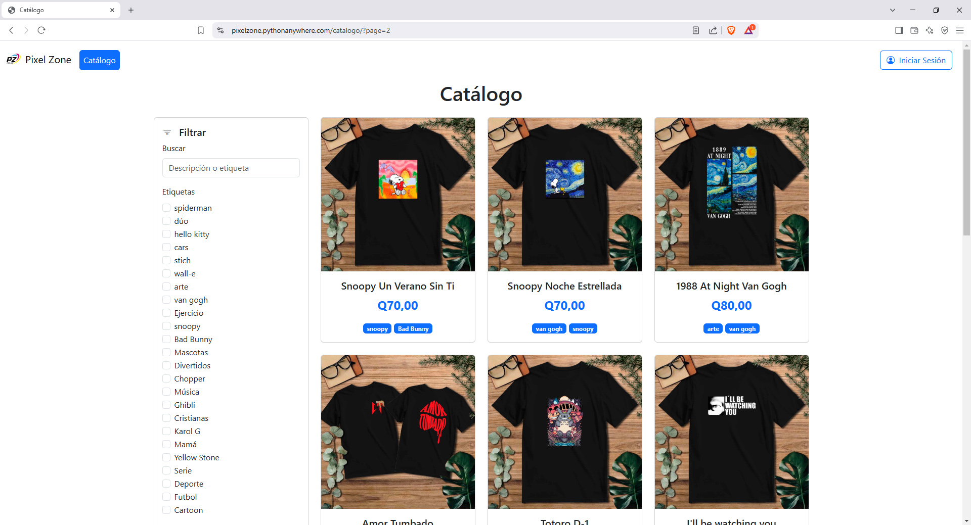 Repositorio PáginaDesarrollo de un catálogo en línea para la venta de playeras