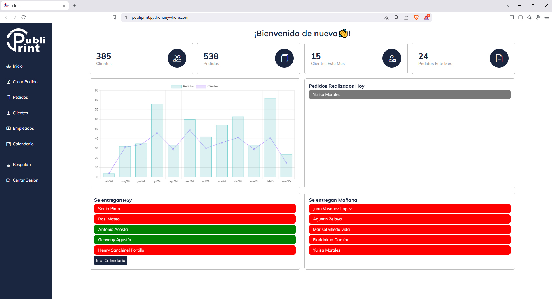 Desarrollo de un Sistema de Gestión Interna para PubliPrint, permitiendo administrar pedidos y clientes de manera eficiente.